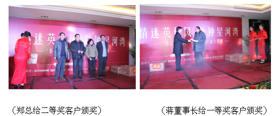 為回饋廣大準業主對泰達星河灣的厚愛,這次活動主辦方特別安排了抽獎環節,分別設有一、二、三等獎,其中一等獎1名,獎品為IPAD2平板電腦,二、三等獎獎品豐厚,抽獎也將現場的氣氛再一次帶到高潮。
