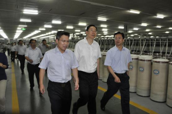 藍書記一行視察了泰達旗下江蘇華達和江蘇豐達的兩個國家產業振興和專項技術改造項目施工現場。詳細了解了兩個項目的投資進度情況,并詢問達產后產能及預計效益情況。公司董事長蔣躍東分別作了詳細匯報,隨后藍書記一行又到集團公司一分廠視察生產現場。視察過程中,藍書記對我公司抓機遇、大投入、上技改、快發展、增后勁的做法表示肯定。對集團公司在棉紡行業不景氣的情況下,卻能取得逆勢而上,穩健發展的好成績給予高度評價。