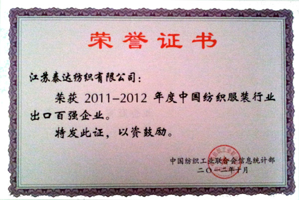 中國紡織出口行業百強企業