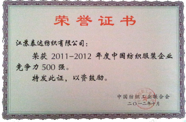 中國紡織服裝企業競爭力500強